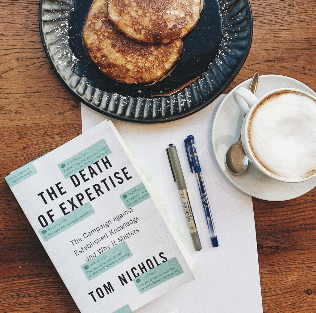 While reading the book, it is easy to constantly tell yourself “I’m not like that” and “I know how to find the right thing on the internet” – which is why, it is important to read the book from an external perspective, detached from your ego. The Death of Expertise is not about comparing yourself with the rest of the population, but understanding the depth of the situation and addressing it without spewing hate or anger.